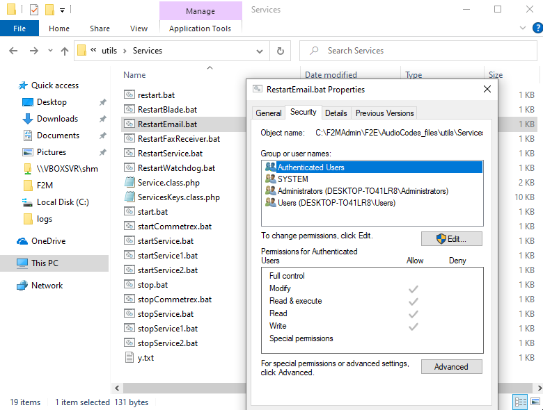 RestartEmail.bat BUILTIN\Administrators:(I)(F)